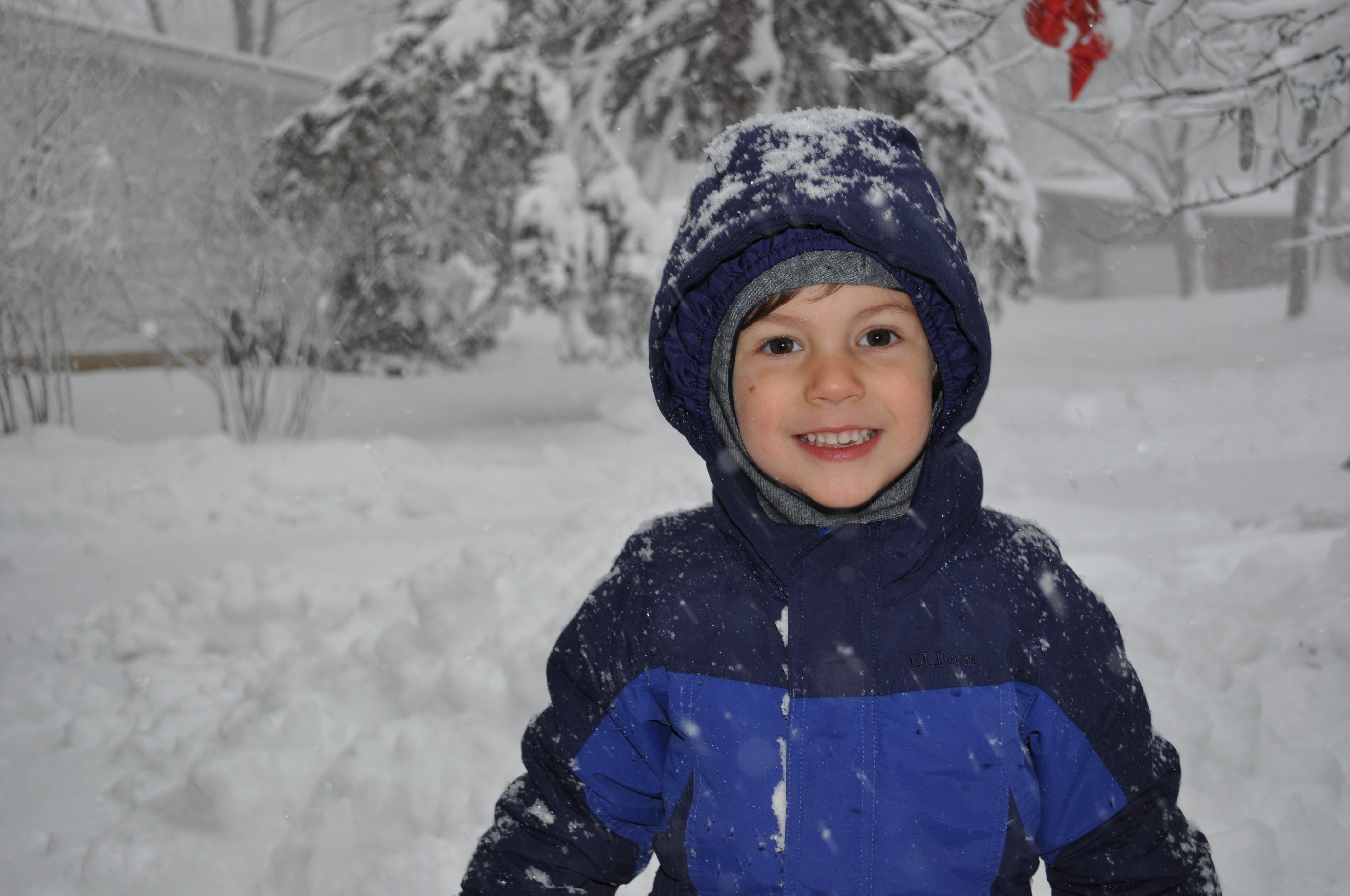We woke up to snow today – lots of snow! Last night Joe was being a curmudgeon about how they call snow days too early these days and half the time the “big storm” they predict doesn’t even happen. Well, this time it did and we are excited about it. I went to the grocery store last night (mob scene) and got fixins for breakfast, including bacon, which is Fritz’s favorite. This morning he said “I’d like to watch Frosty and eat bacon.” Sounded good to me. The bacon energy is keeping him warm outside while he leaps in snow banks, makes snow angels and runs wild all over the place!